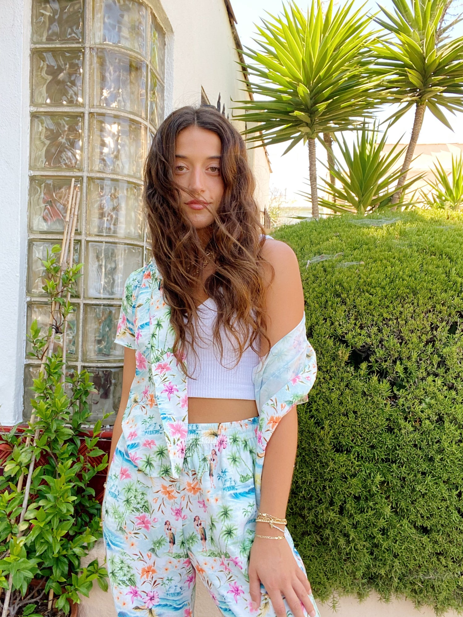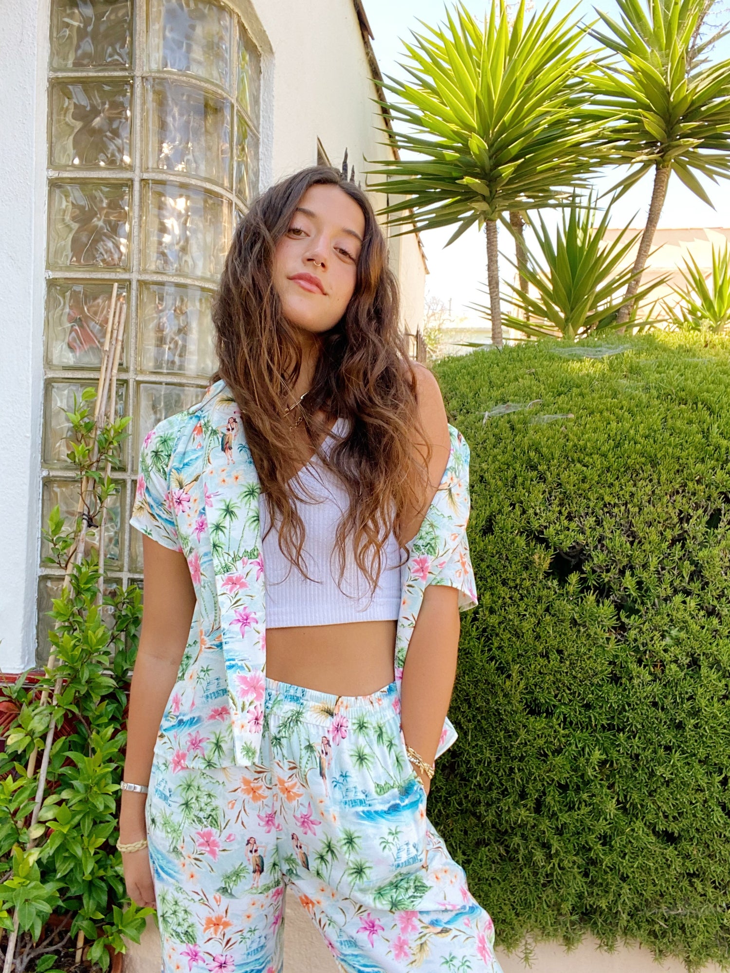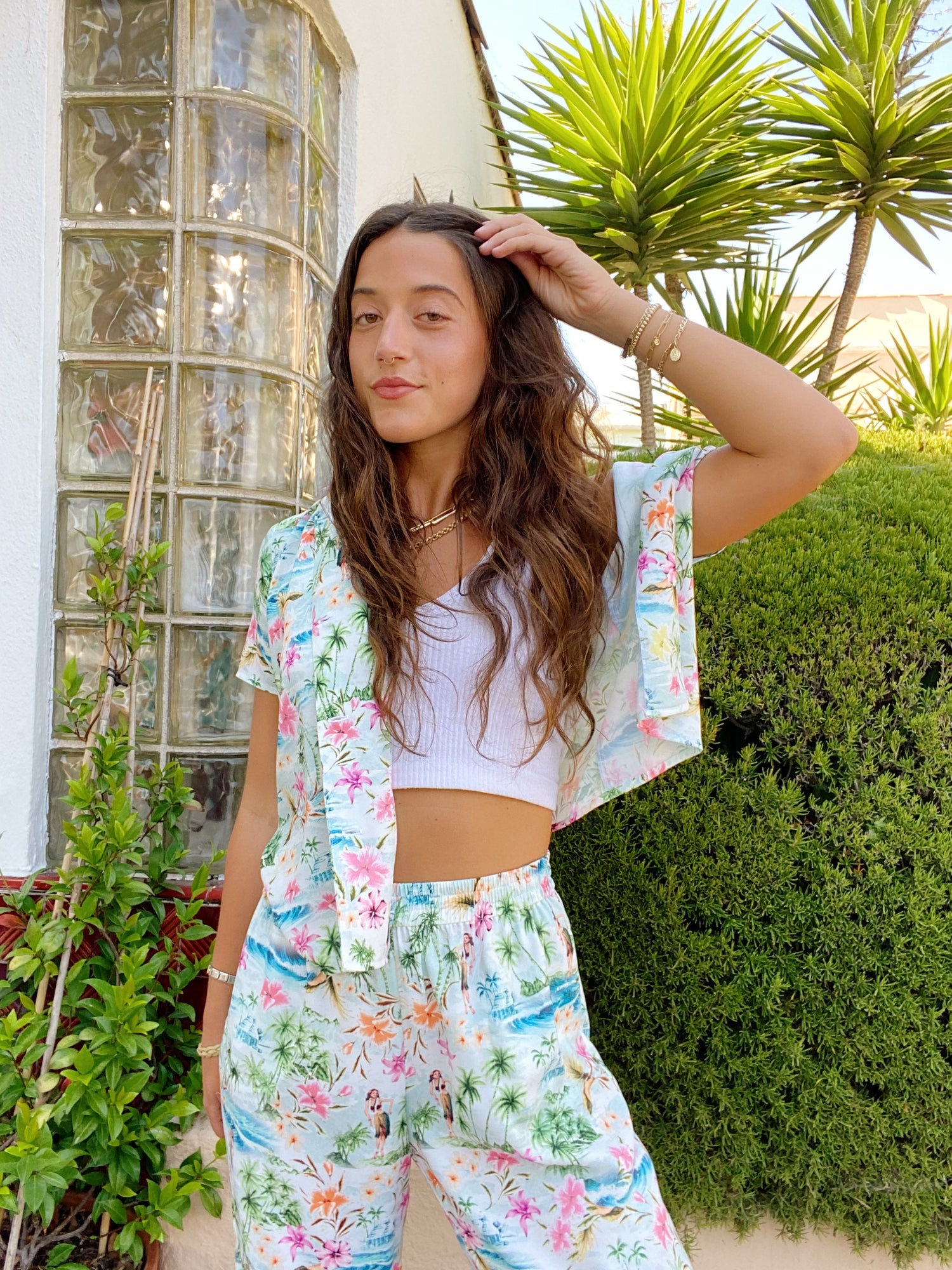 Our Camp Shirt is a modern twist on the iconic 1950's style. Originally these shirts were a men's style, but we love making masculine items cute so we designed them to fit the female frame in a flattering way. Wear it buttoned or open or even tie it up depending on your mood. It looks great all ways.