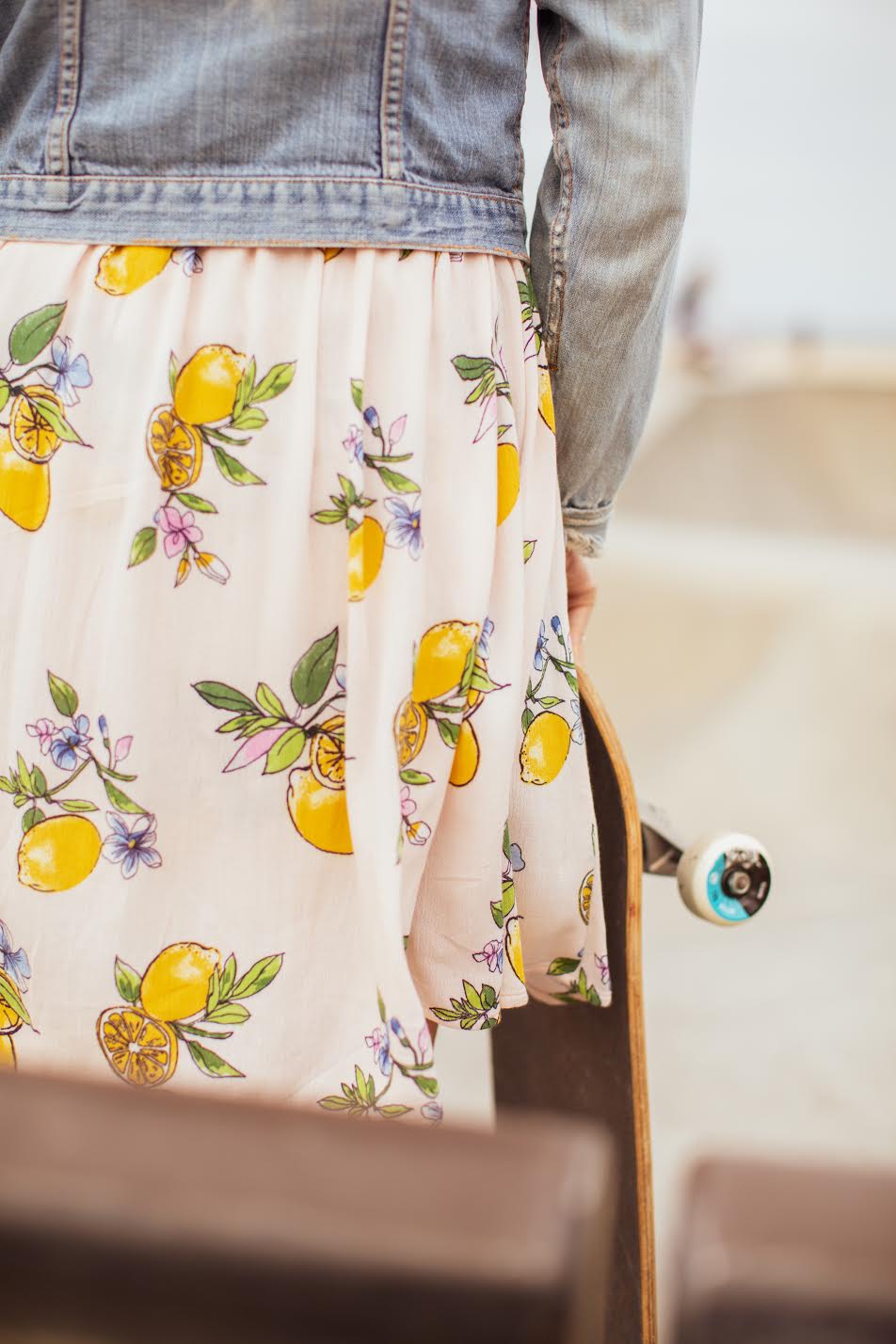 On trend Lemon Blossom fruit print in the sweetest shade of pale pink. Soft cotton blend fabric, featuring adjustable wrap tie waist and adjustable straps.