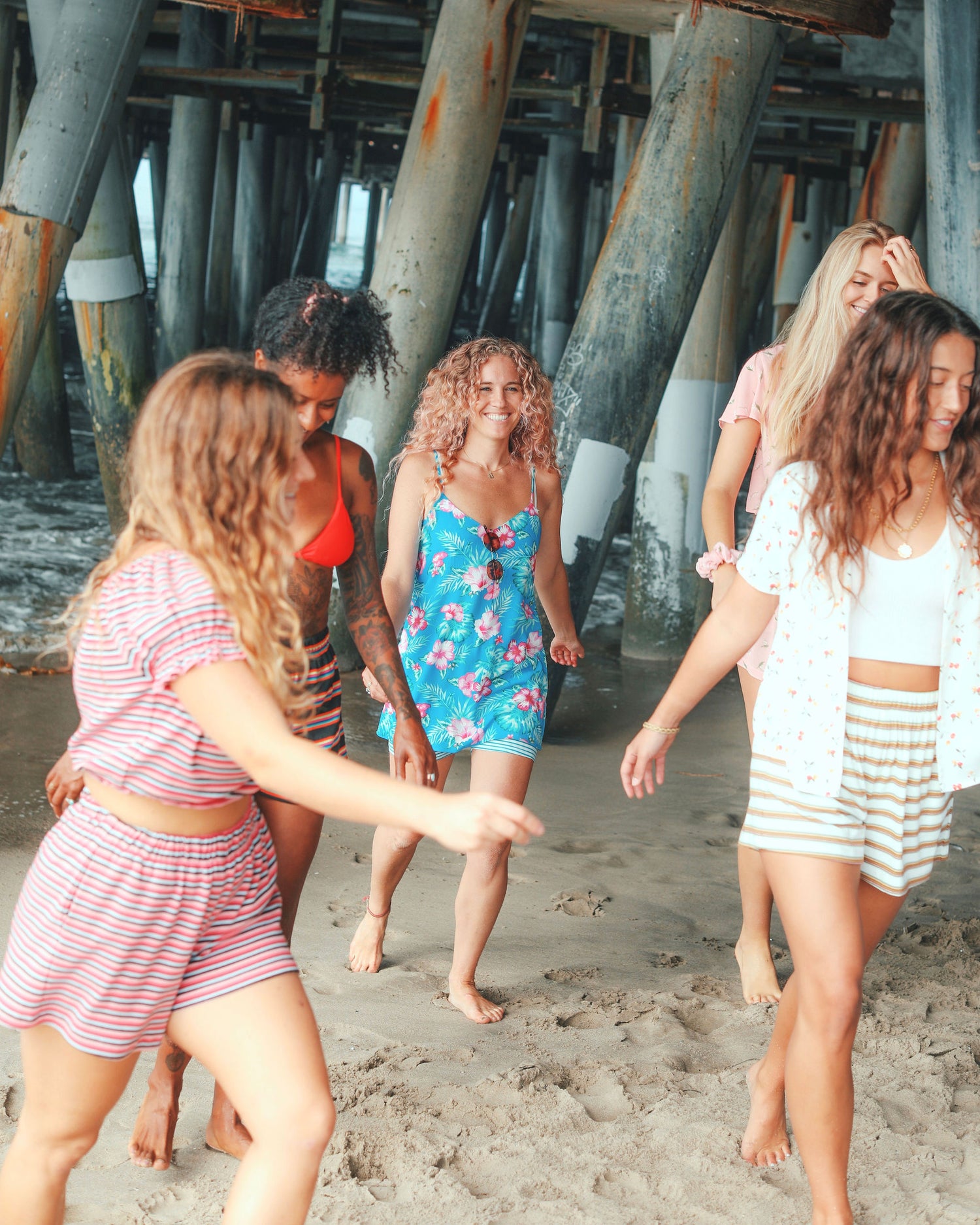 The sweetest take-it-anywhere dress to show off your legs in a beautiful soft print fabric. Looks great on all bodies. Subtle V neck line and adjustable straps.