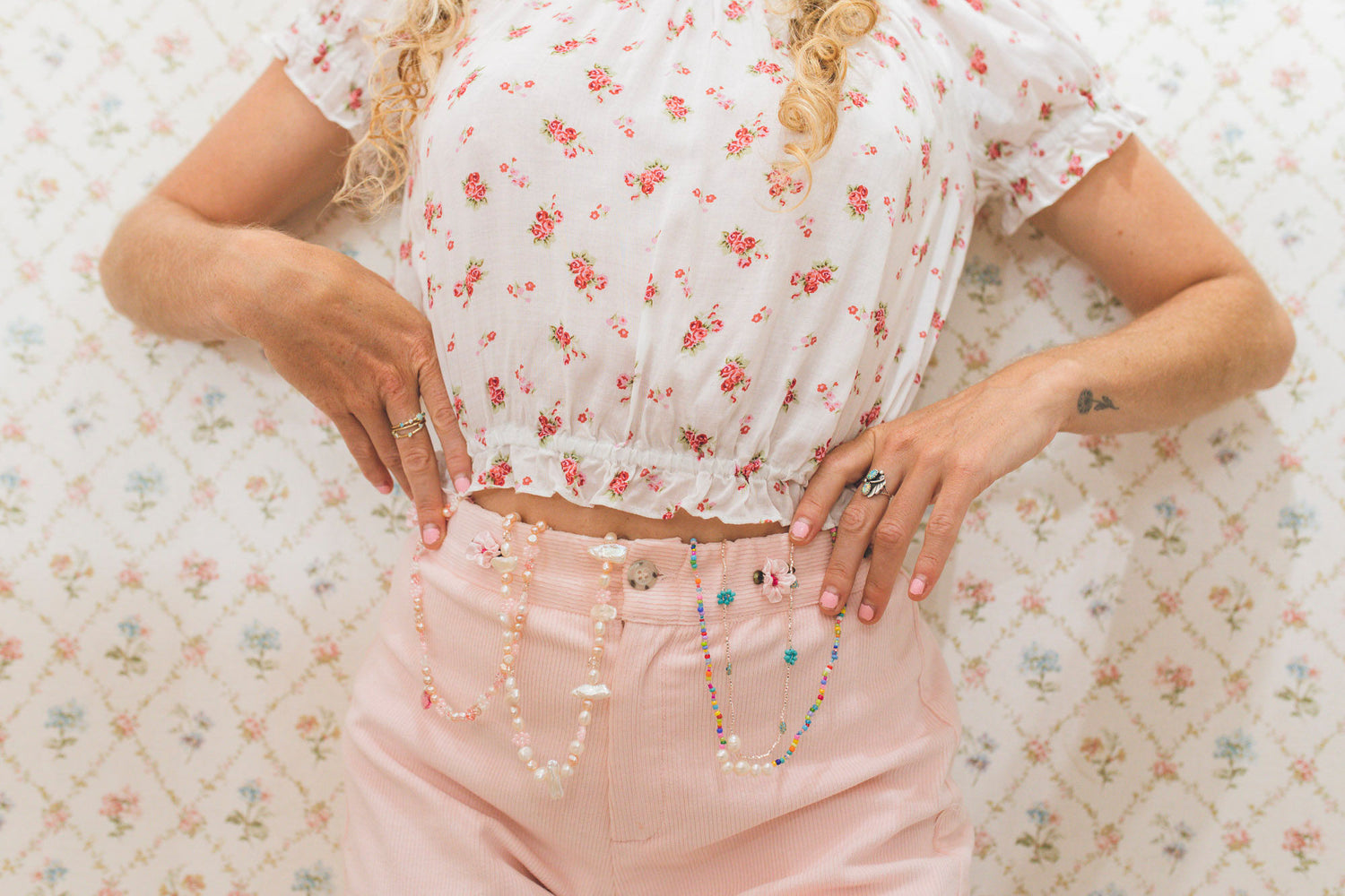 Made with an assortment of glass colored beads, freshwater pearls, & Swarovski crystals with a sterling silver clasp. Handmade by Surfing Cowgirl exclusively for Lady Dandelion.