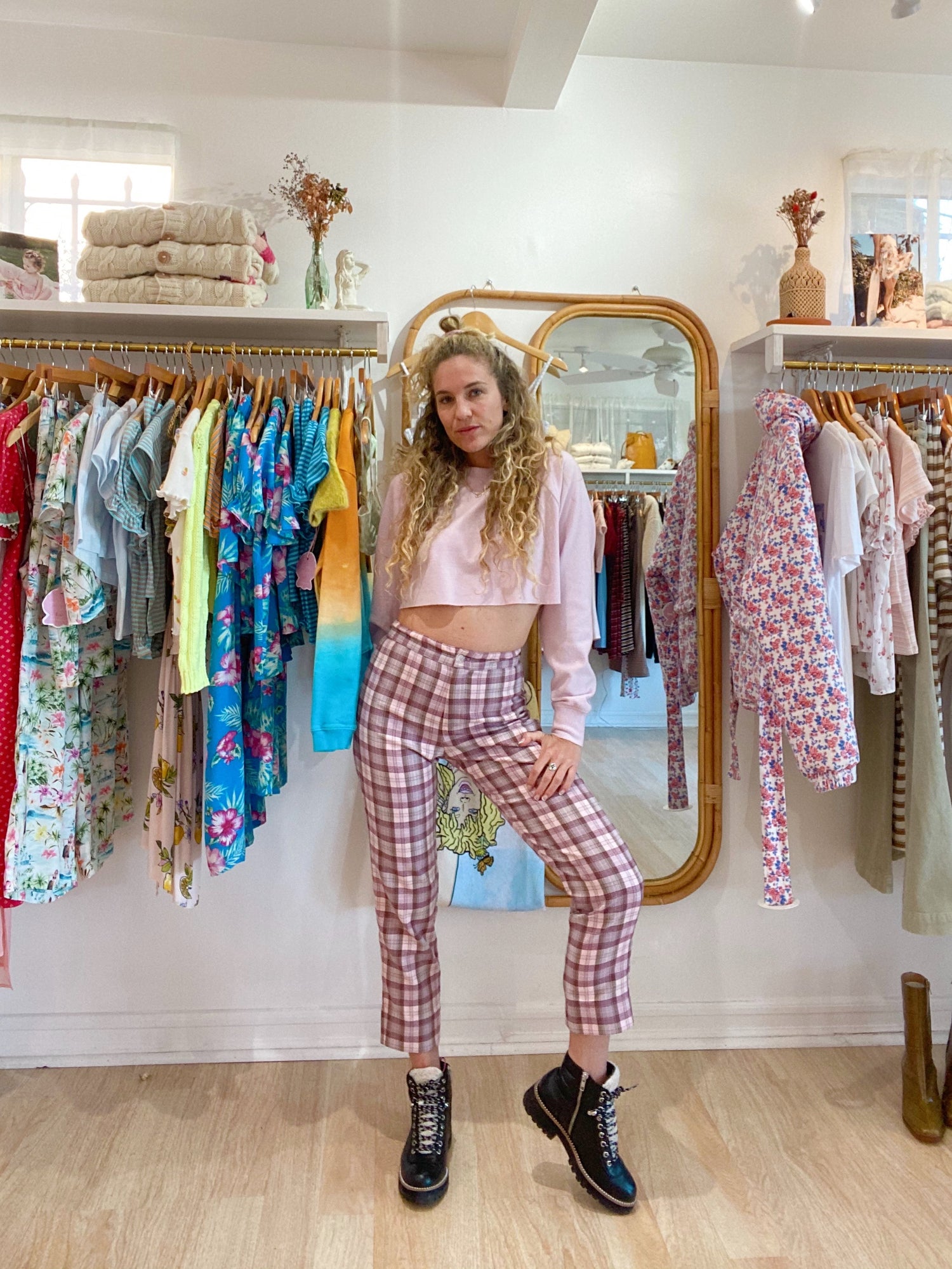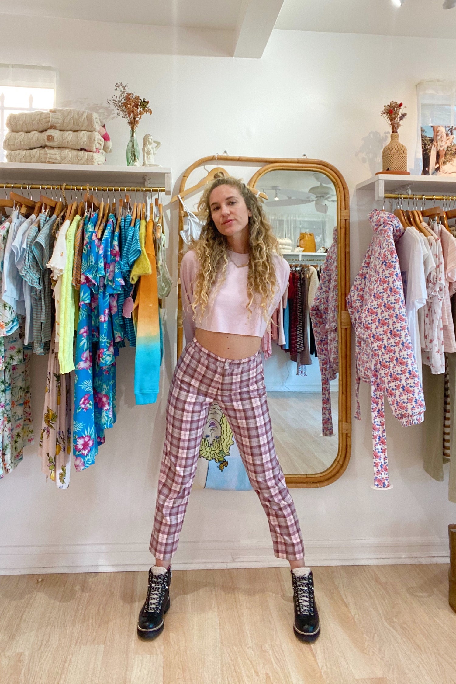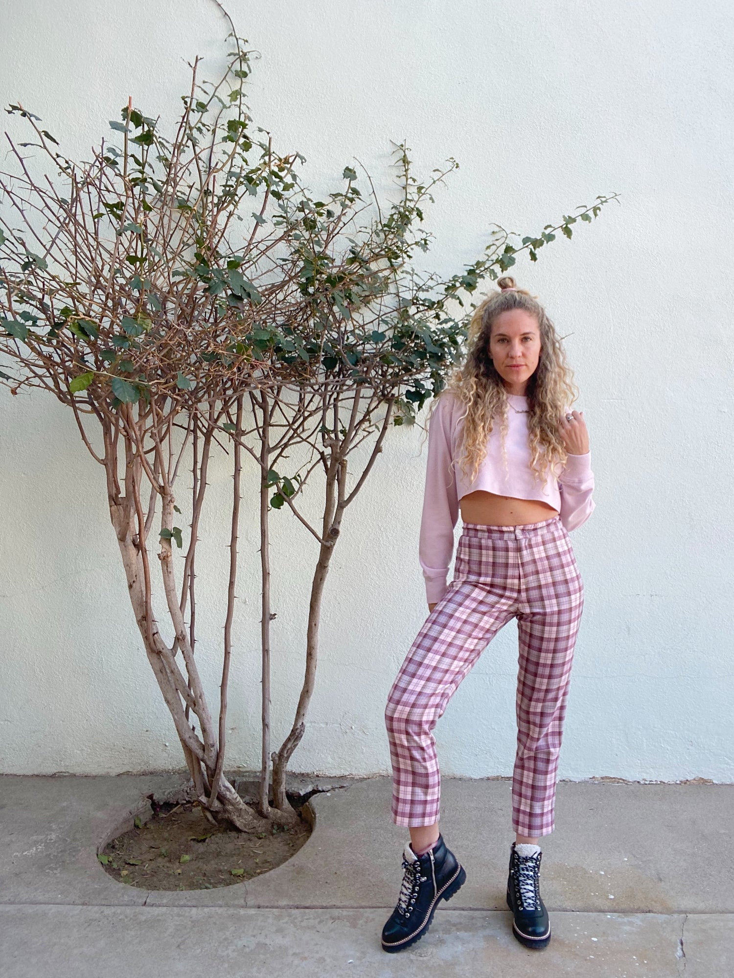 We call this the skater pant of our dreams. With a slight high rise elastic waist, retro straight leg, and small slit detail at the cuff, the Skater Pant is the most comfortable you're going to feel while looking this hot! Wear them with a pair of Vans or Converse to skate in, or with a pair of heels when you're feeling fancy.