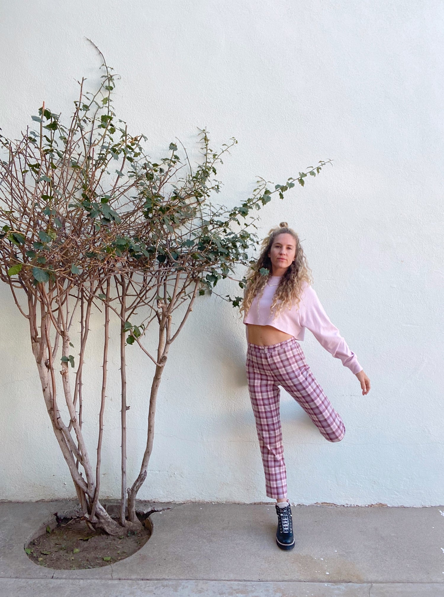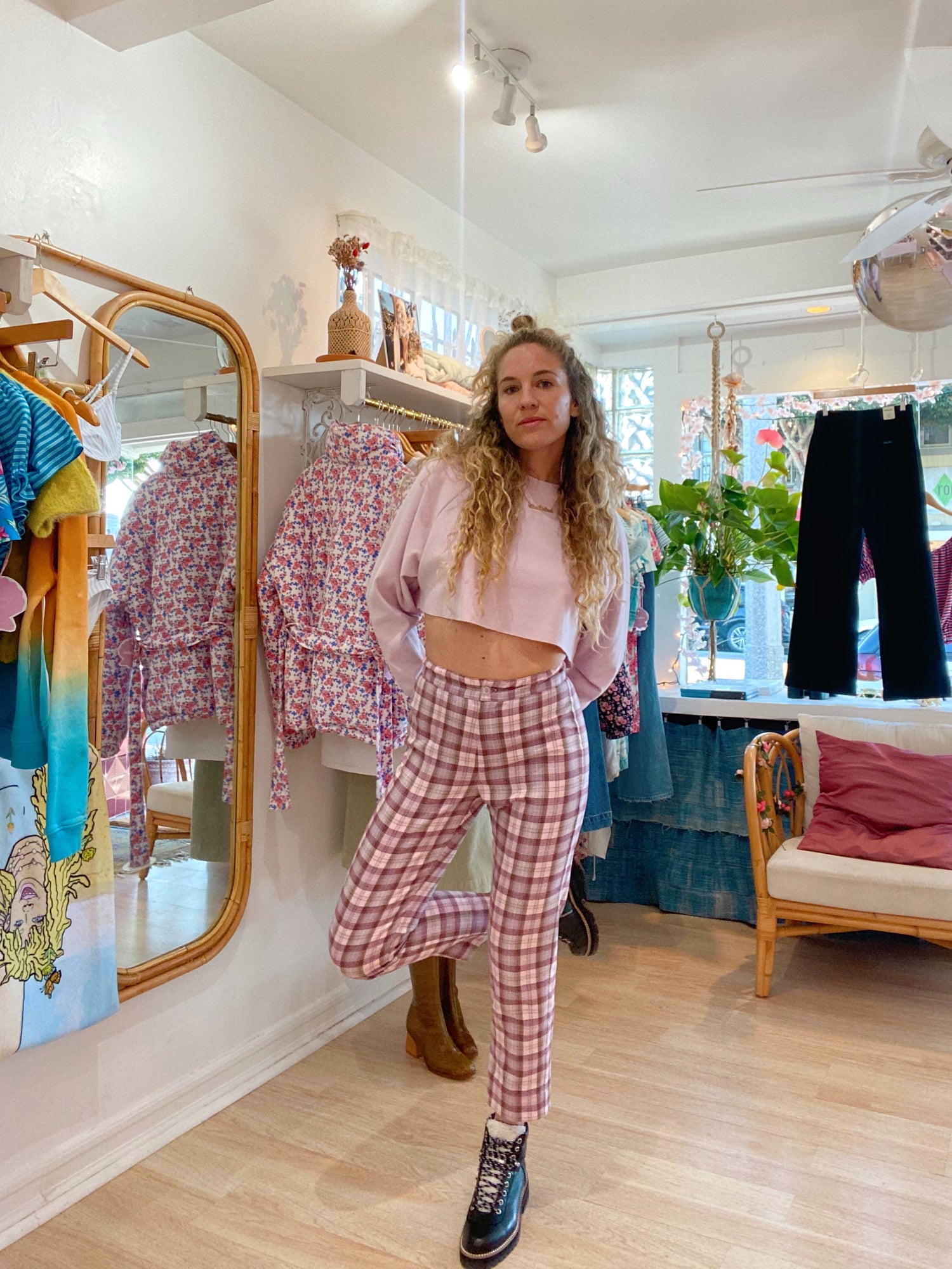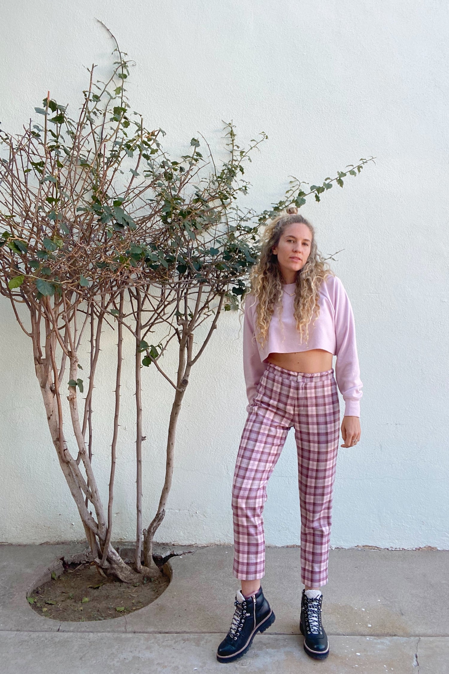 We call this the skater pant of our dreams. With a slight high rise elastic waist, retro straight leg, and small slit detail at the cuff, the Skater Pant is the most comfortable you're going to feel while looking this hot! Wear them with a pair of Vans or Converse to skate in, or with a pair of heels when you're feeling fancy.